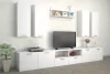 Con dos cajones, dos puertas de apertura lateral, tres compartimentos abiertos y estante de vidrio